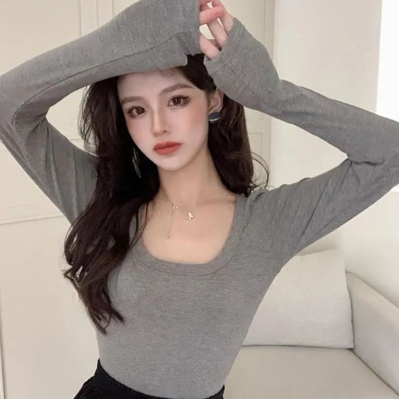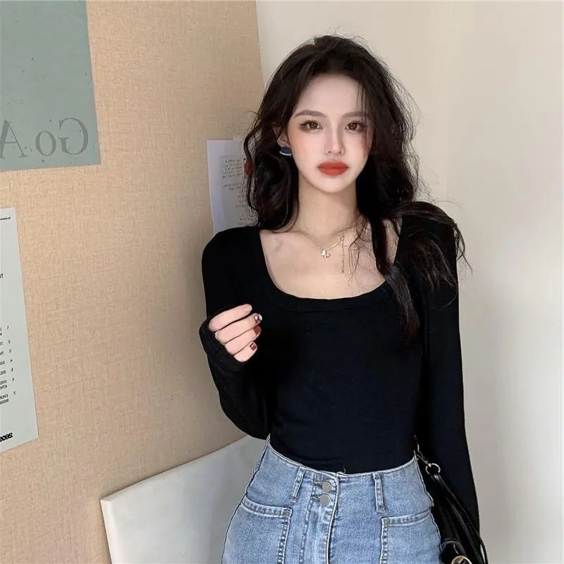 高级感别致漂亮打底衫 上衣ins百搭显瘦修身 t恤女2025早秋新款 长袖