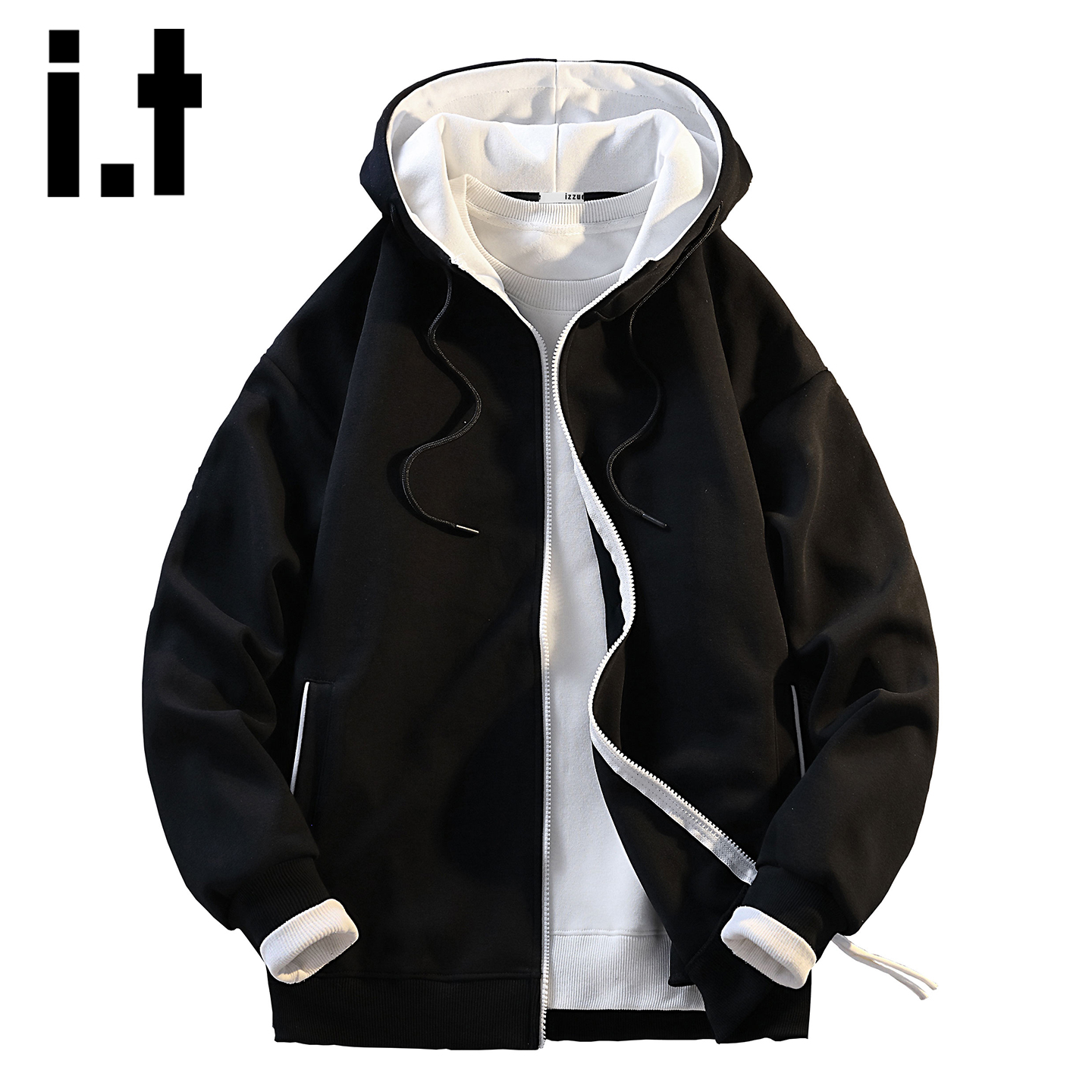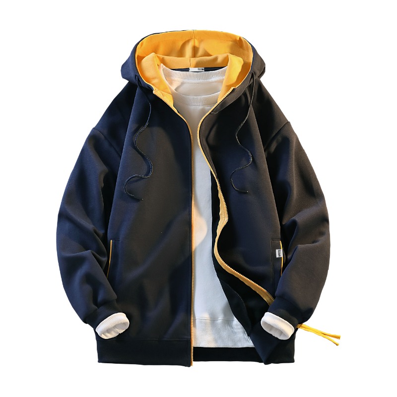 izzue 潮牌美式 撞色立领开衫 春秋季 休闲运动连帽外套Y 卫衣男士