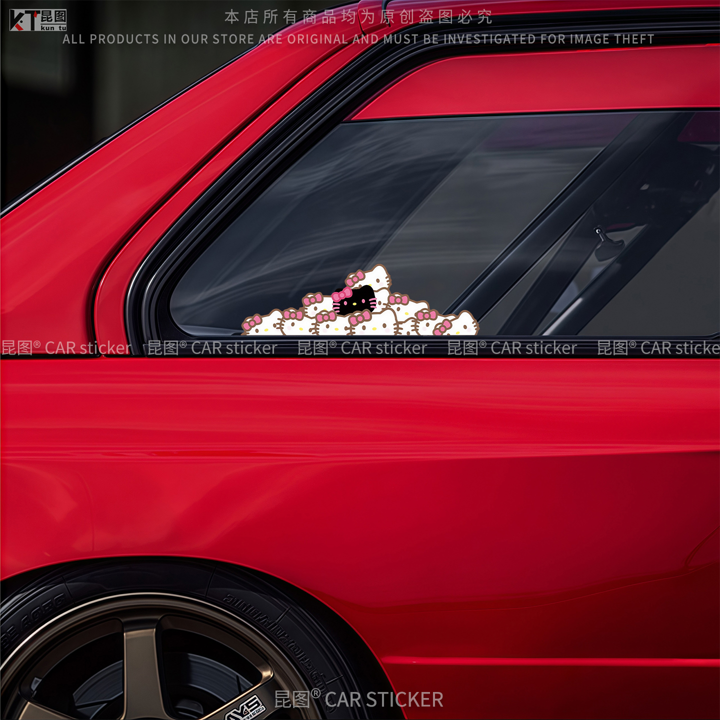 HelloKitty凯蒂猫汽车贴纸长条划痕遮盖挡贴画电动车行李箱装 饰贴