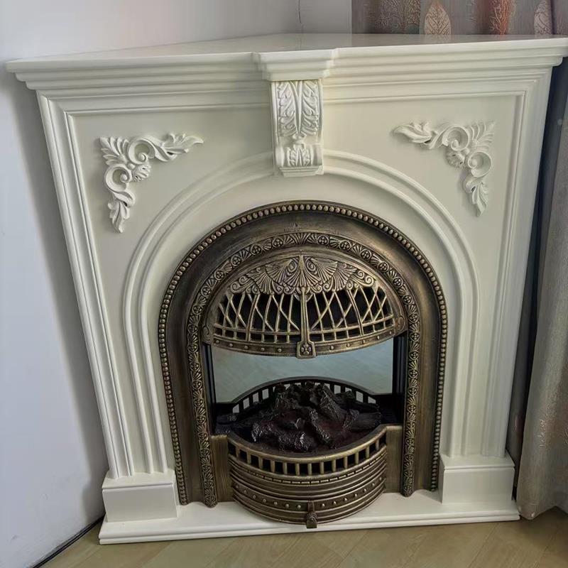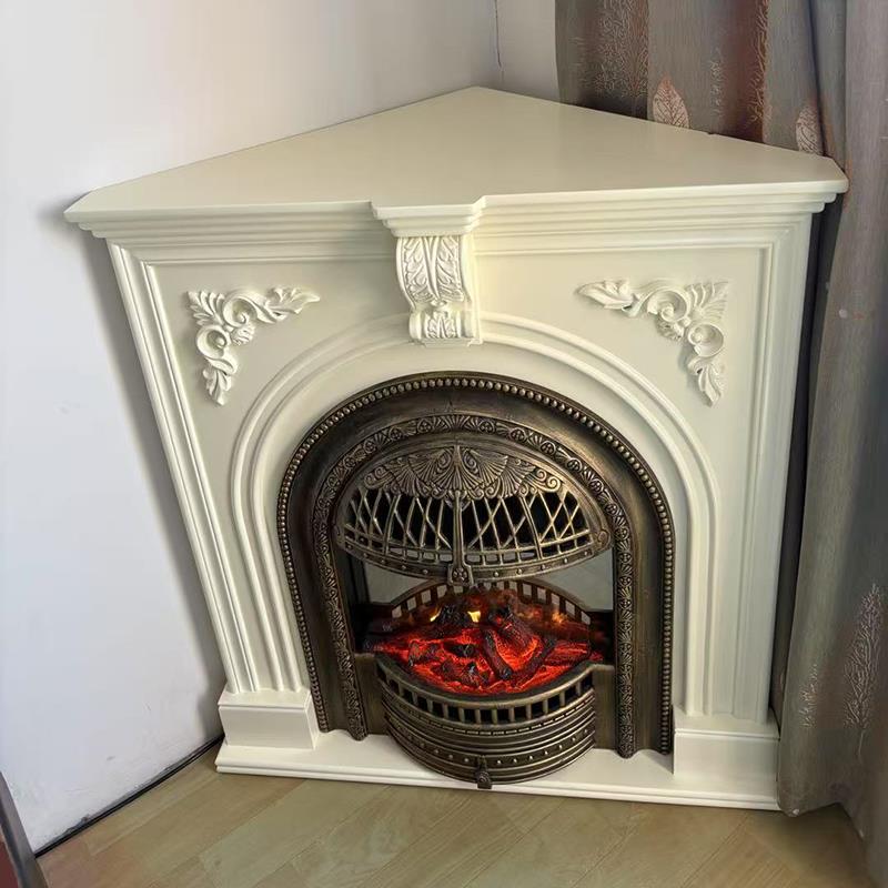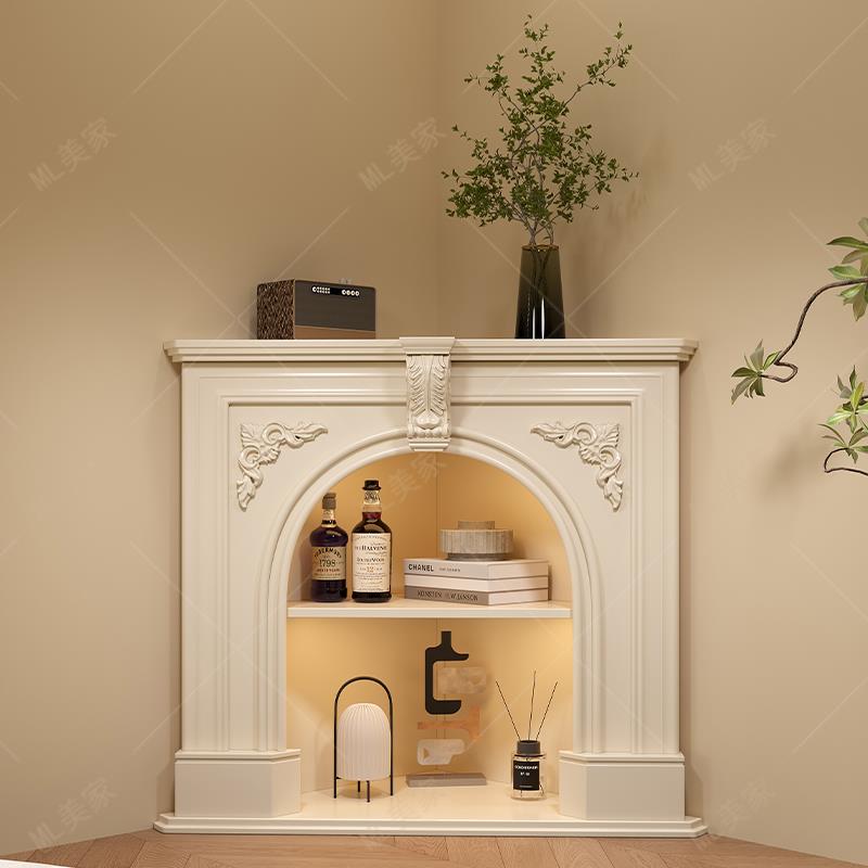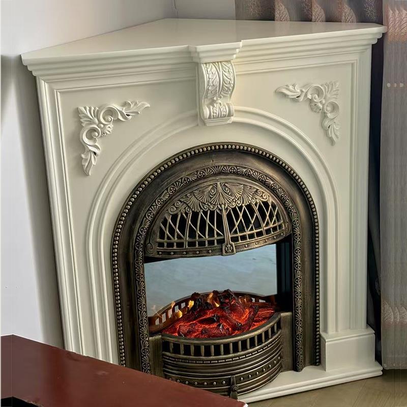法式 实木墙角三角壁炉玄关门厅柜斜角壁炉架仿真火 转角壁炉柜美式