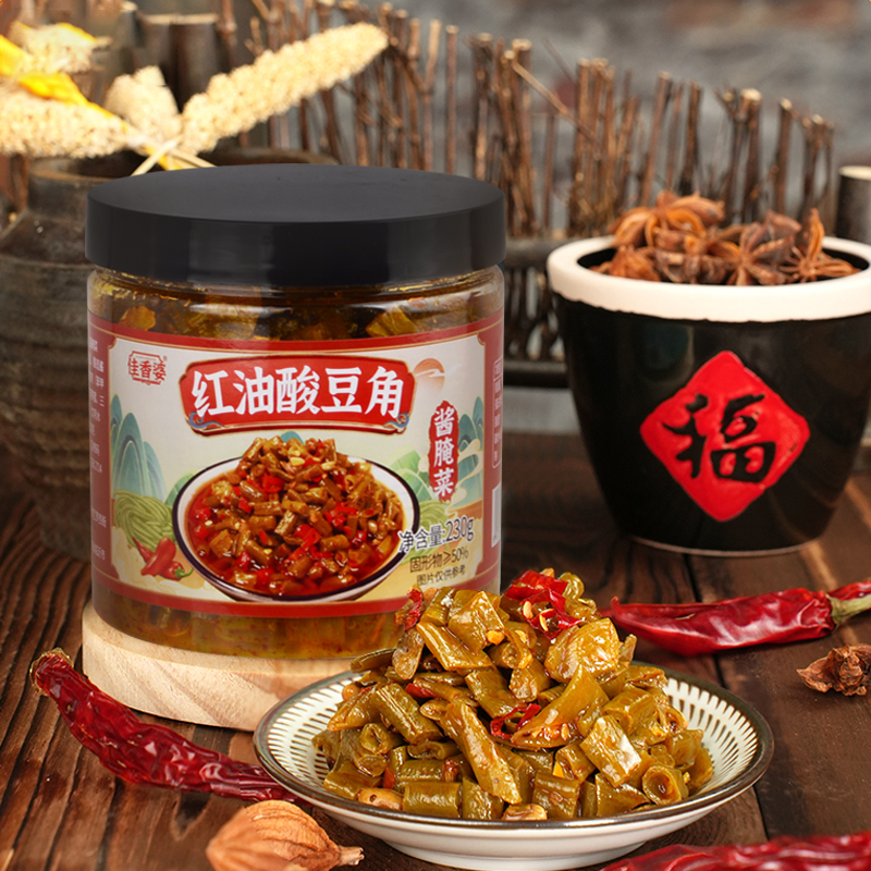 香辣可口佳香婆萝卜干香辣脆爽红油酸豆角开胃下饭菜手工开盖即食
