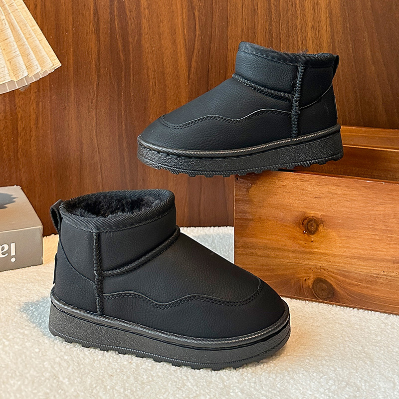 皮毛一体 加绒加厚男女童保暖棉鞋 儿童雪地靴皮面防水2025冬季 新款