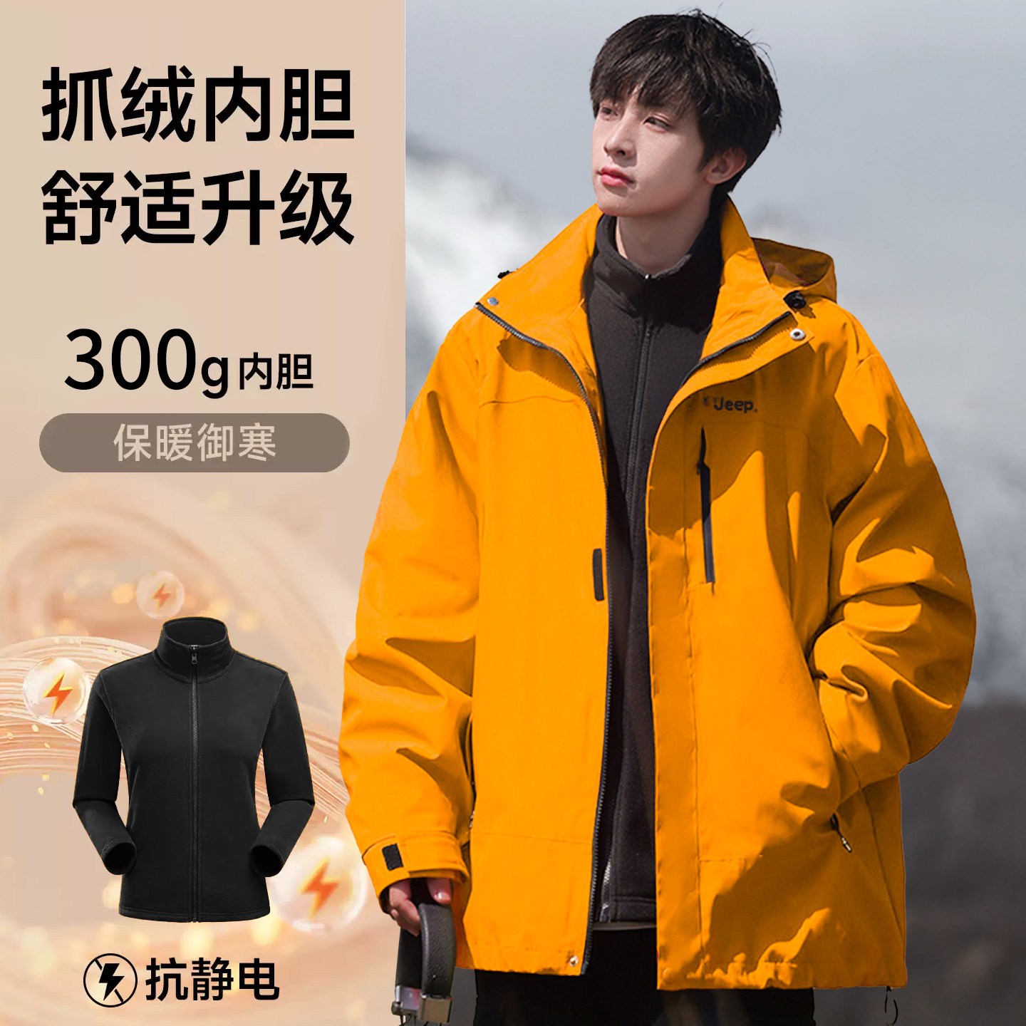 Jeep吉普冲锋衣外套男女三合一新款 抓绒内胆防风防泼水登山服夹克