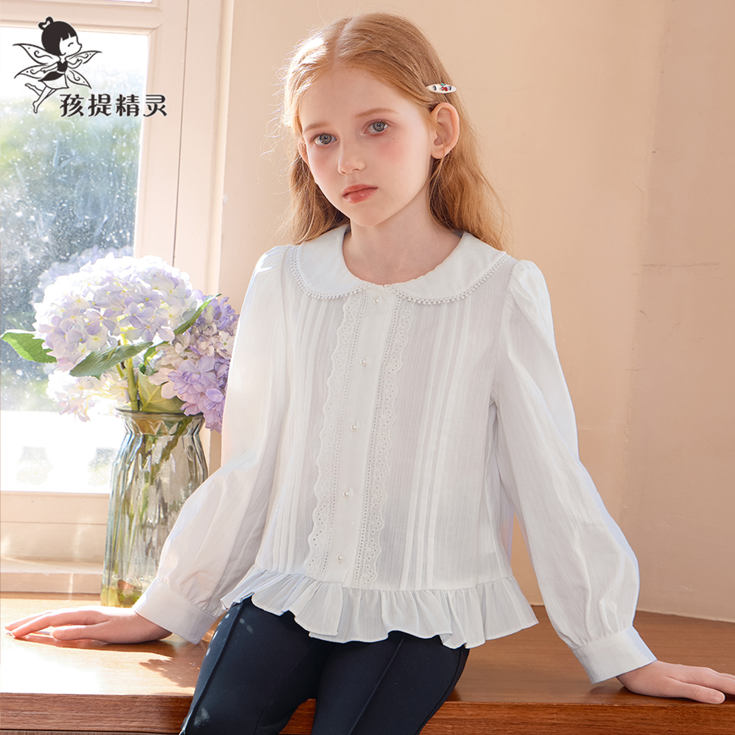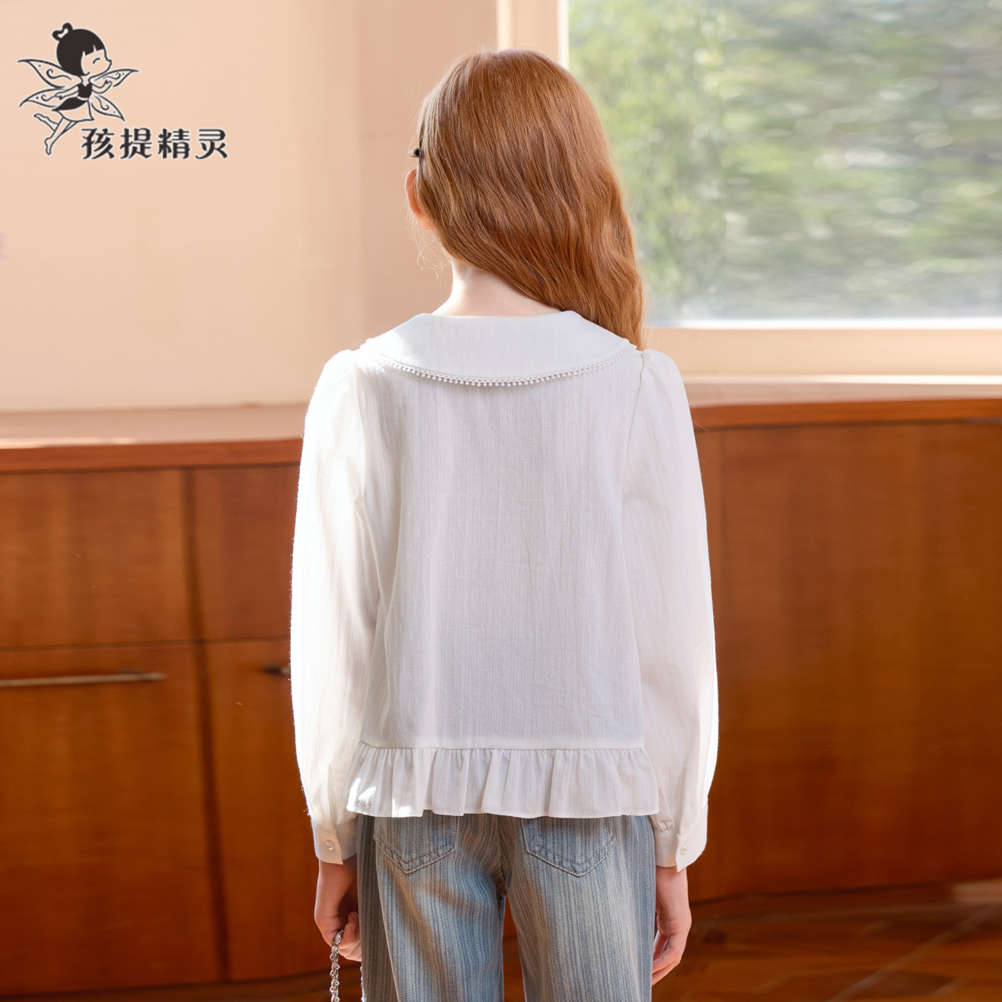 洋气大童学院风衬衣秋装 新款 上衣儿童 2025秋季 女童白色娃娃领衬衫