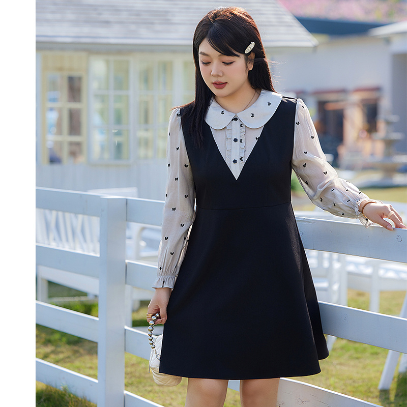 新款 2025年秋季 气质收腰显瘦胖MM减龄雪纺提花连衣裙 女装 绮娑大码