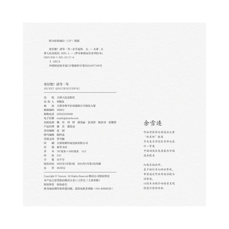 请等一等余雪连图 社新华书店正版 文绘本 少儿动漫书天津人民出版 图画书 梦奇和朋友们系列绘本:寄居蟹