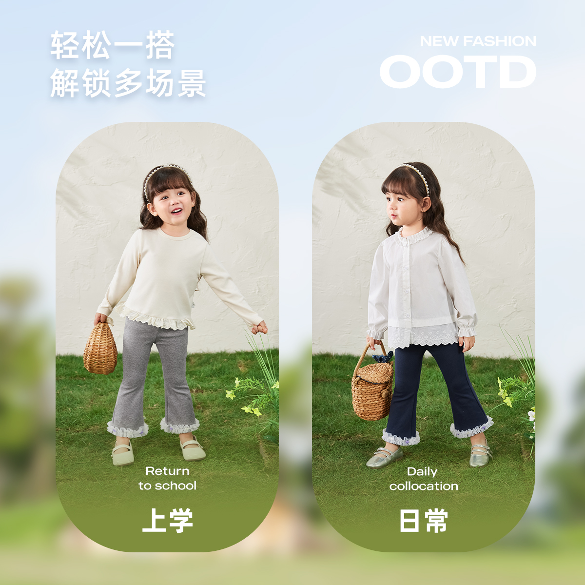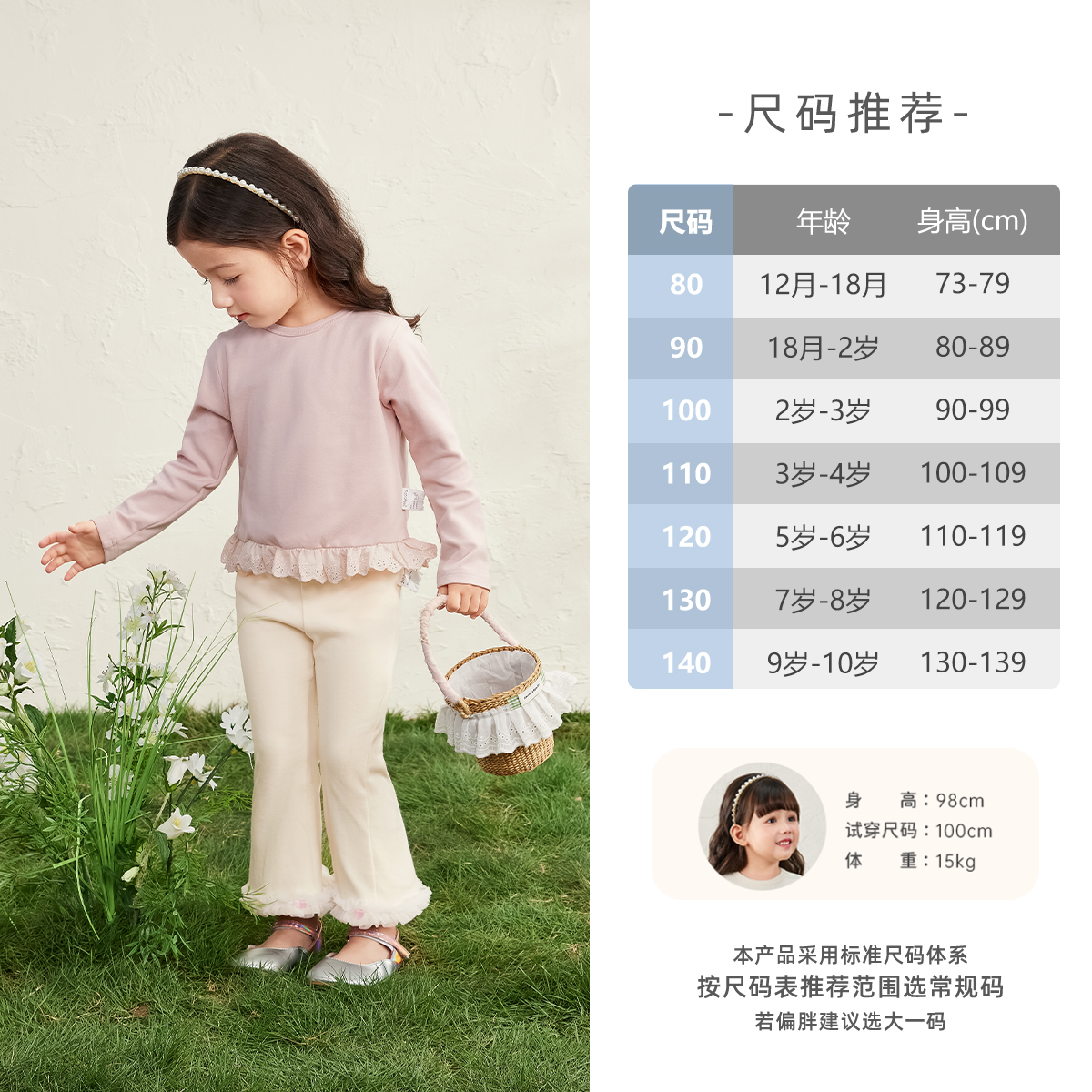 7A抗菌 女小童喇叭花边儿童秋装 女童裤 秋季 长裤 子宝宝微喇休闲裤