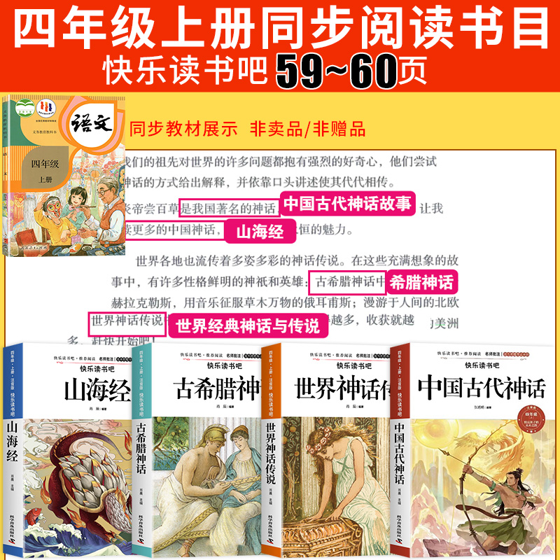 神话与传说古希腊山海经小学生版 书籍快乐读书吧四上语文书目世界经典 中国古代神话故事四年级上册阅读课外书必读正版 全套4册