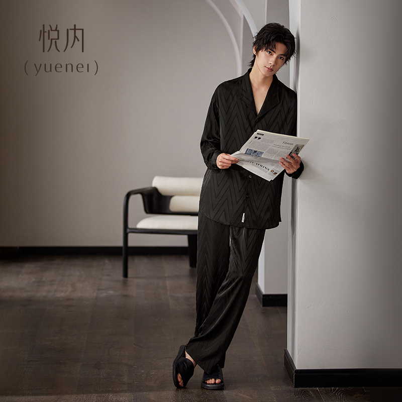 春秋款 通用家居服薄款 秋季 四季 黑色高级感 冰丝绸长袖 悦内睡衣男士