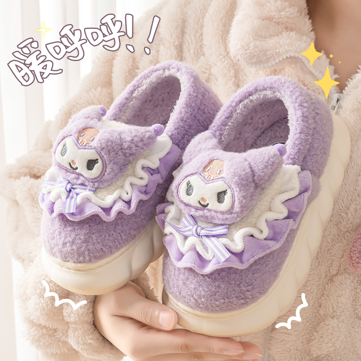 包跟秋冬 居家室内防滑宝宝棉鞋 库洛米儿童棉拖鞋 女童女孩2025新款