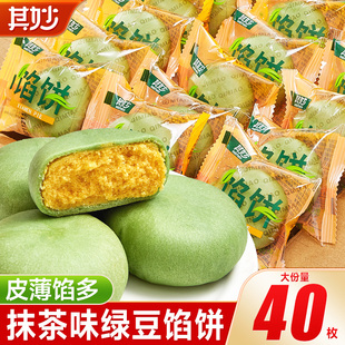 抹茶味绿豆饼传统老式 糕点心原味绿豆糕早餐面包零食休闲食品小吃