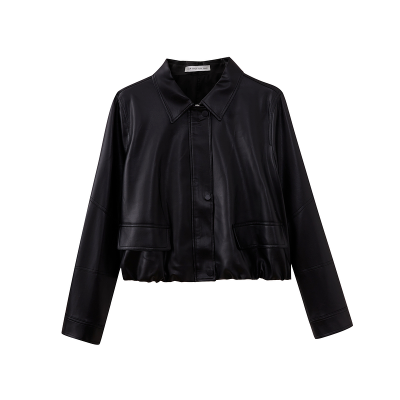 暗夜黑立领PU皮衣外套女MOFAN摩凡2025秋款 显瘦 酷飒风皮夹克短款