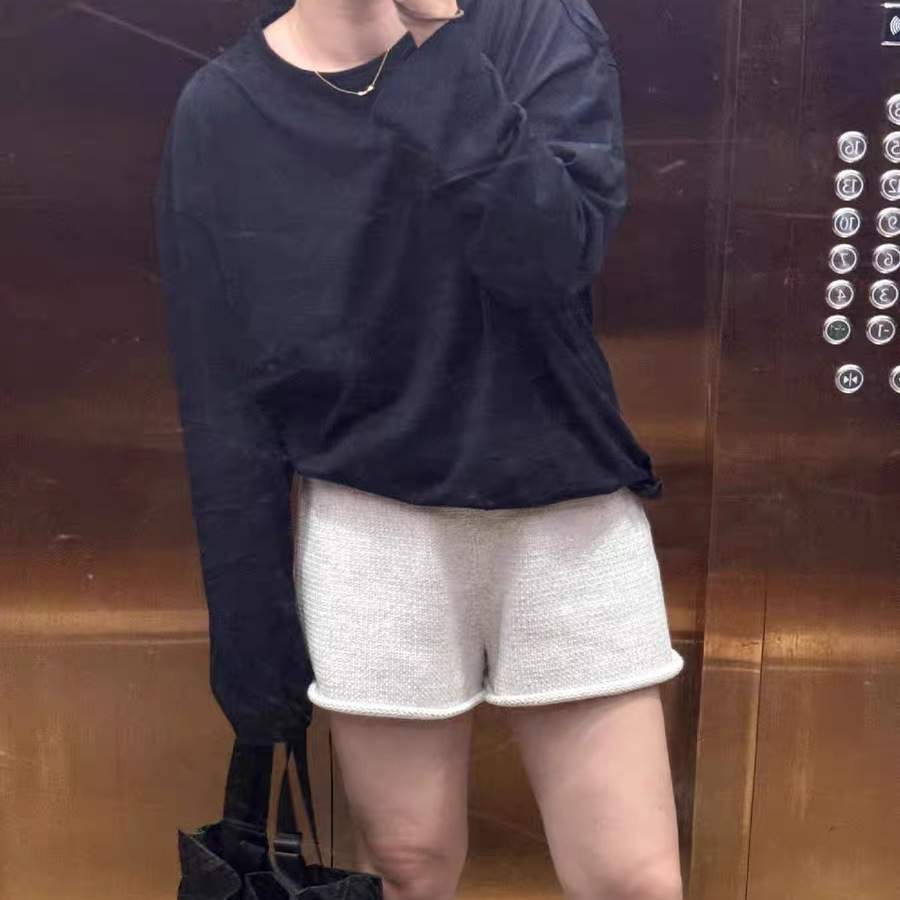 子ins 别致复古设计感坑条毛线裤 卷边辣妹针织短裤 女2025秋冬新款
