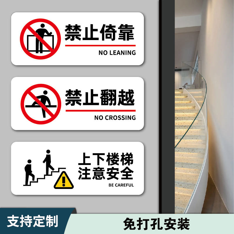 亚克力创意标识牌禁止攀爬翻越警示牌上下楼梯注意安全禁止倚靠硬推请勿坐卧小心玻璃易碎物品请勿触碰提示牌