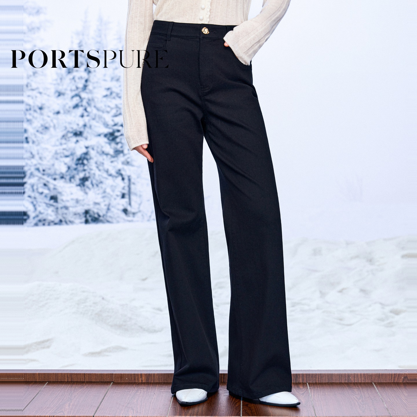 摩登通勤阔腿牛仔裤 2025早秋新品 宝姿PORTSPURE女装 商场同款