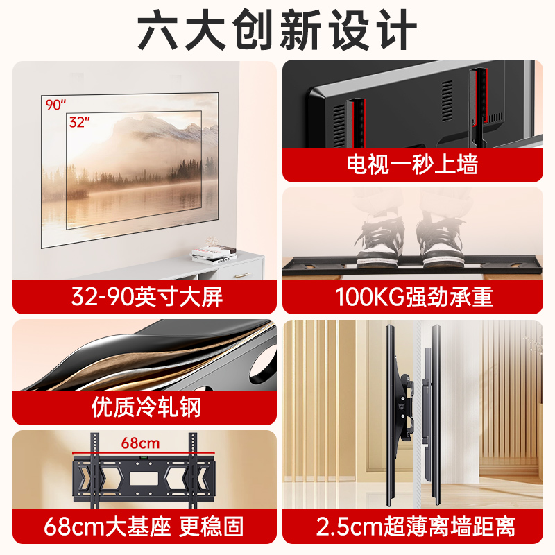 7585寸适用于小米海信TCL等 通用电视机挂架挂墙壁挂支架43