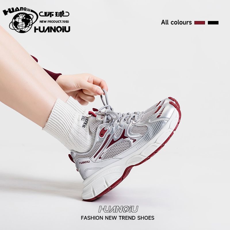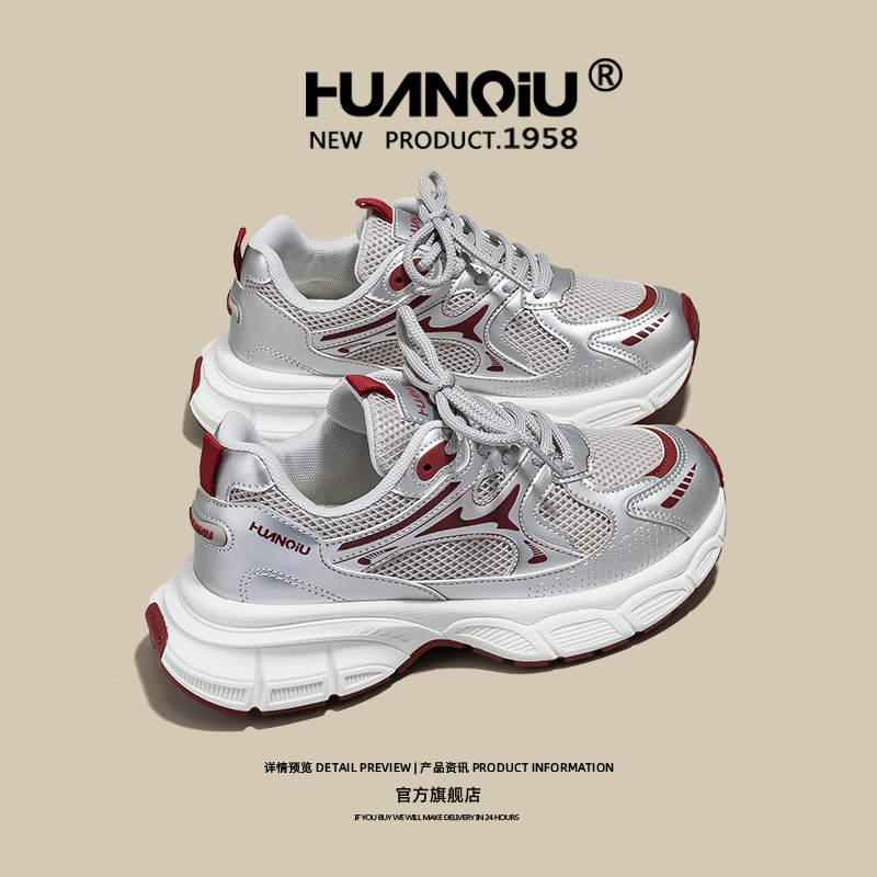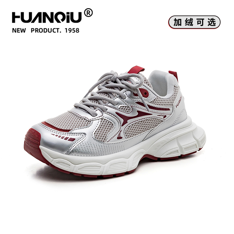 2025秋季 骆驼女鞋 新款 休闲透气老爹鞋 女 厚底增高银色运动鞋 银熠