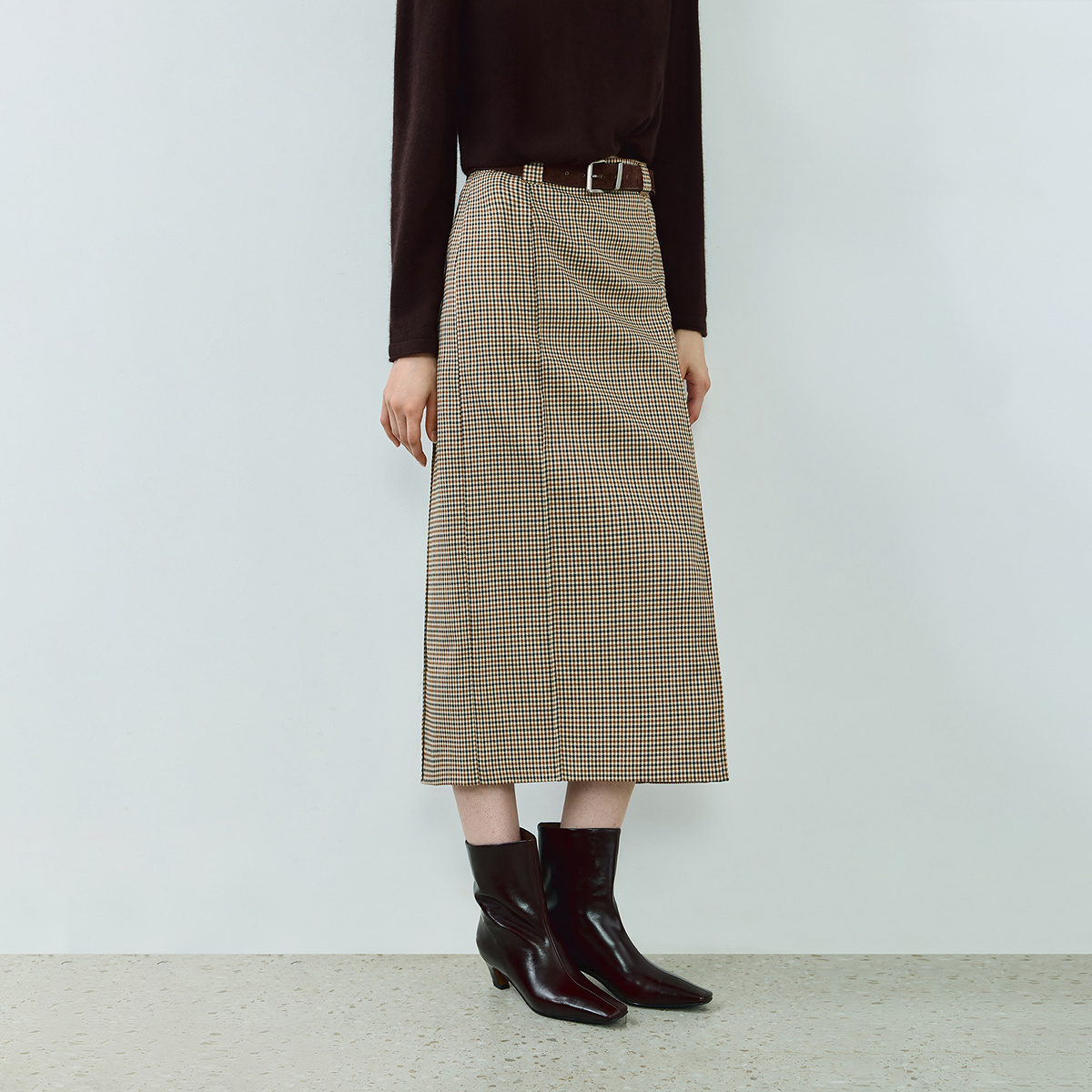 学生a字小短裙 修身 毛呢格子百褶裙半身裙女秋冬高腰2025新款 韩版