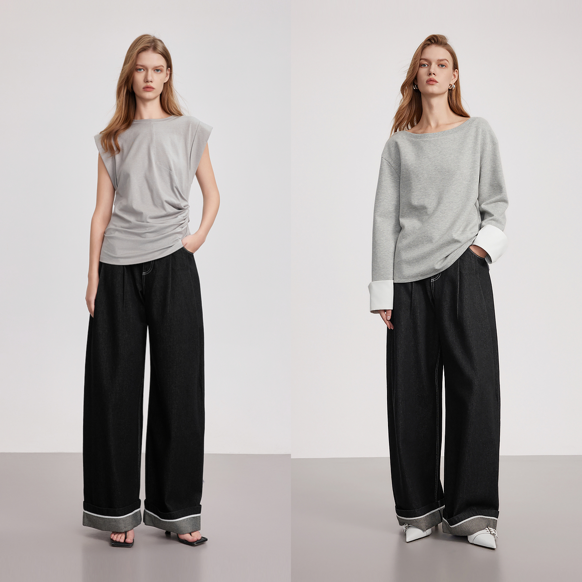 型好看阔腿牛仔裤 子女士直筒裤 女2025新款 高腰宽松弛感裤 春秋季 版