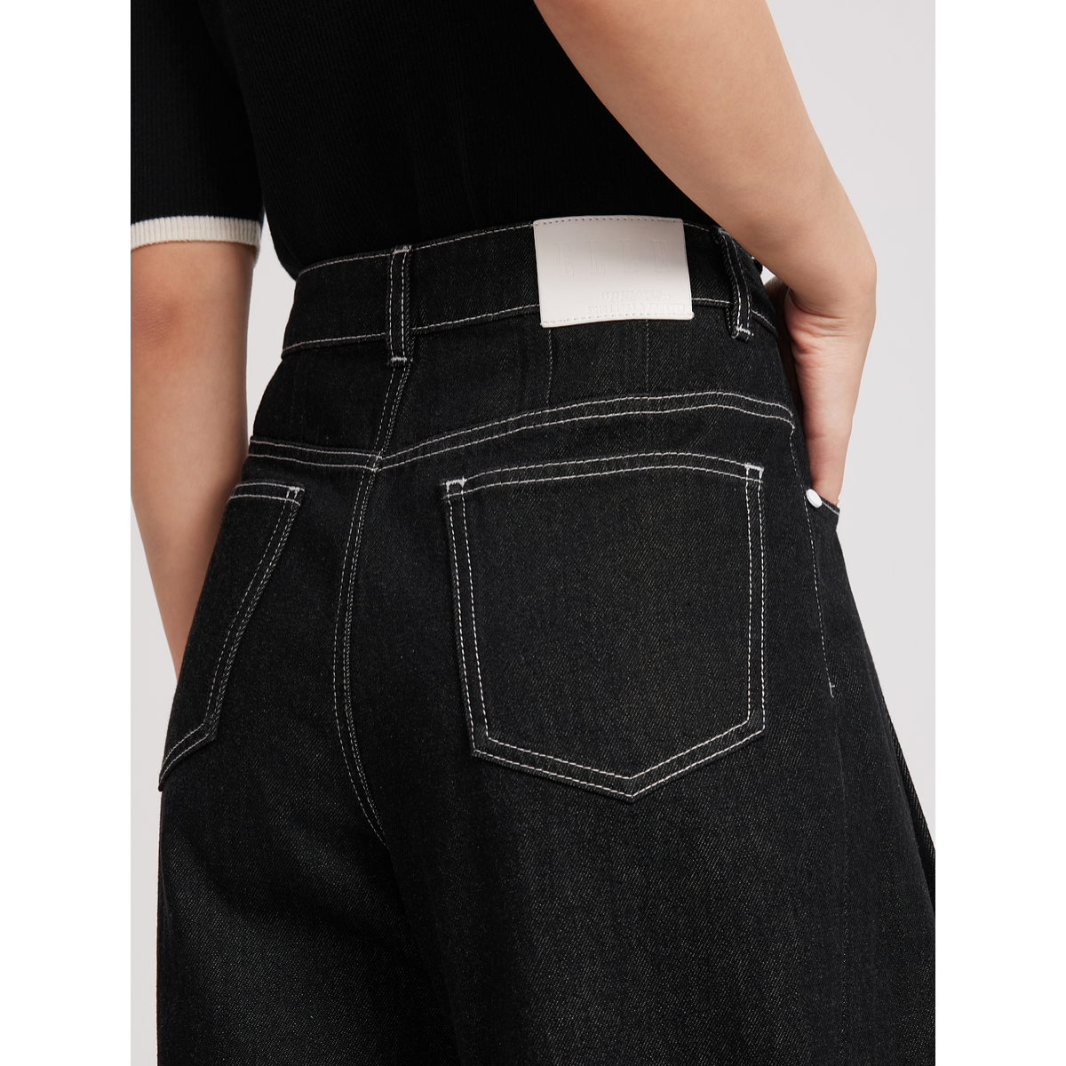 女05415301 牛仔长裤 佐丹奴牛仔裤 女原色洗水复古收褶半松紧腰薄款