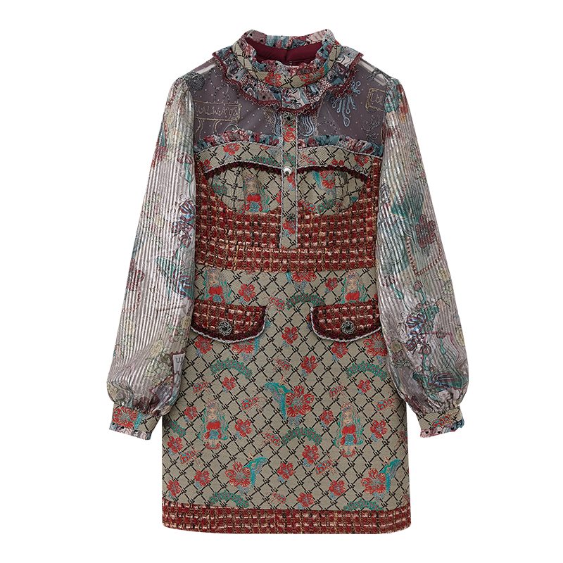 立领钉珠泡泡长袖 新中式 蕾丝连衣裙10833LQ08255 新款 固执秋季