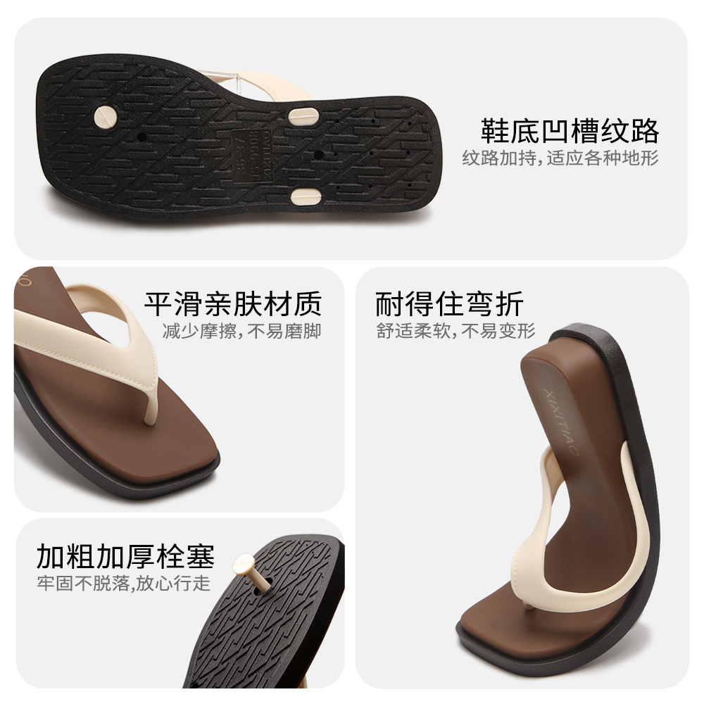 细细条 女 高级感复古拼色韩系ins人字拖夏日沙滩海边度假夹脚拖鞋