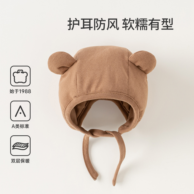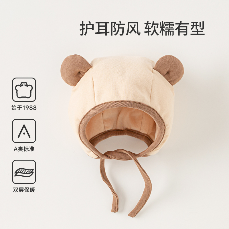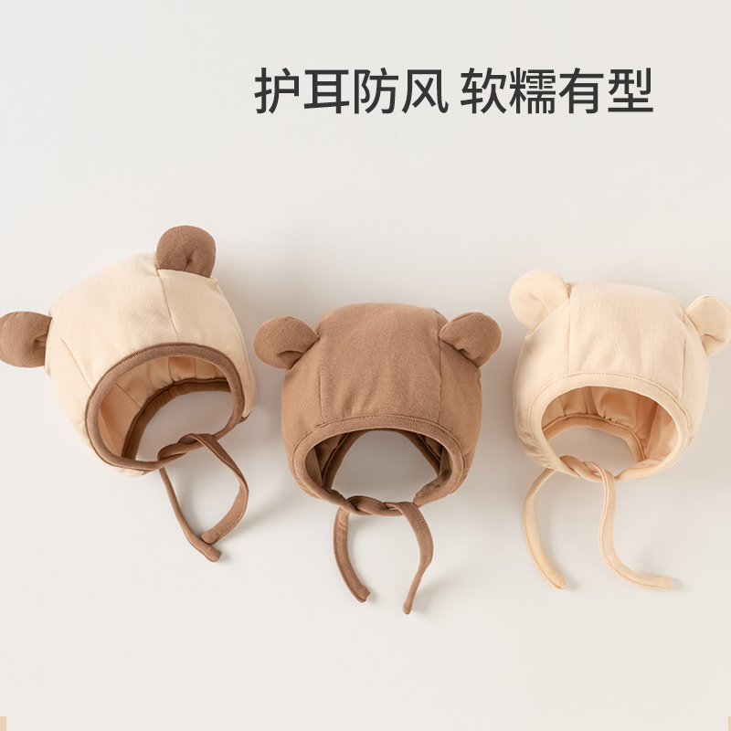 胎帽新生婴儿a类纯棉秋季 加厚0到3个月初生小月龄宝宝护卤门帽子