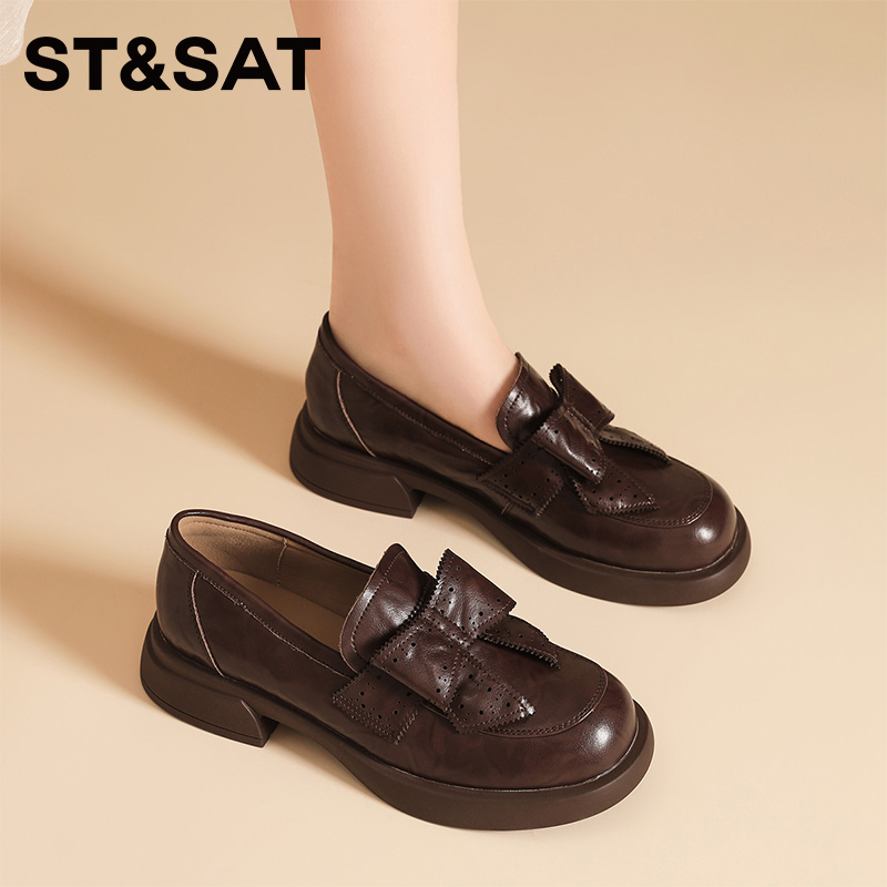 小皮鞋 一脚蹬复古学院单鞋 圆头蝴蝶结英伦风乐福鞋 星期六2025新款