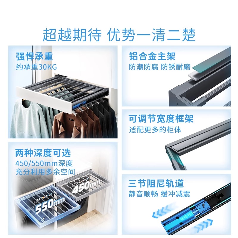 衣帽间挂衣杆太空铝柜内裤 架抽拉式 架高承重 收纳裤 悍高衣柜顶装