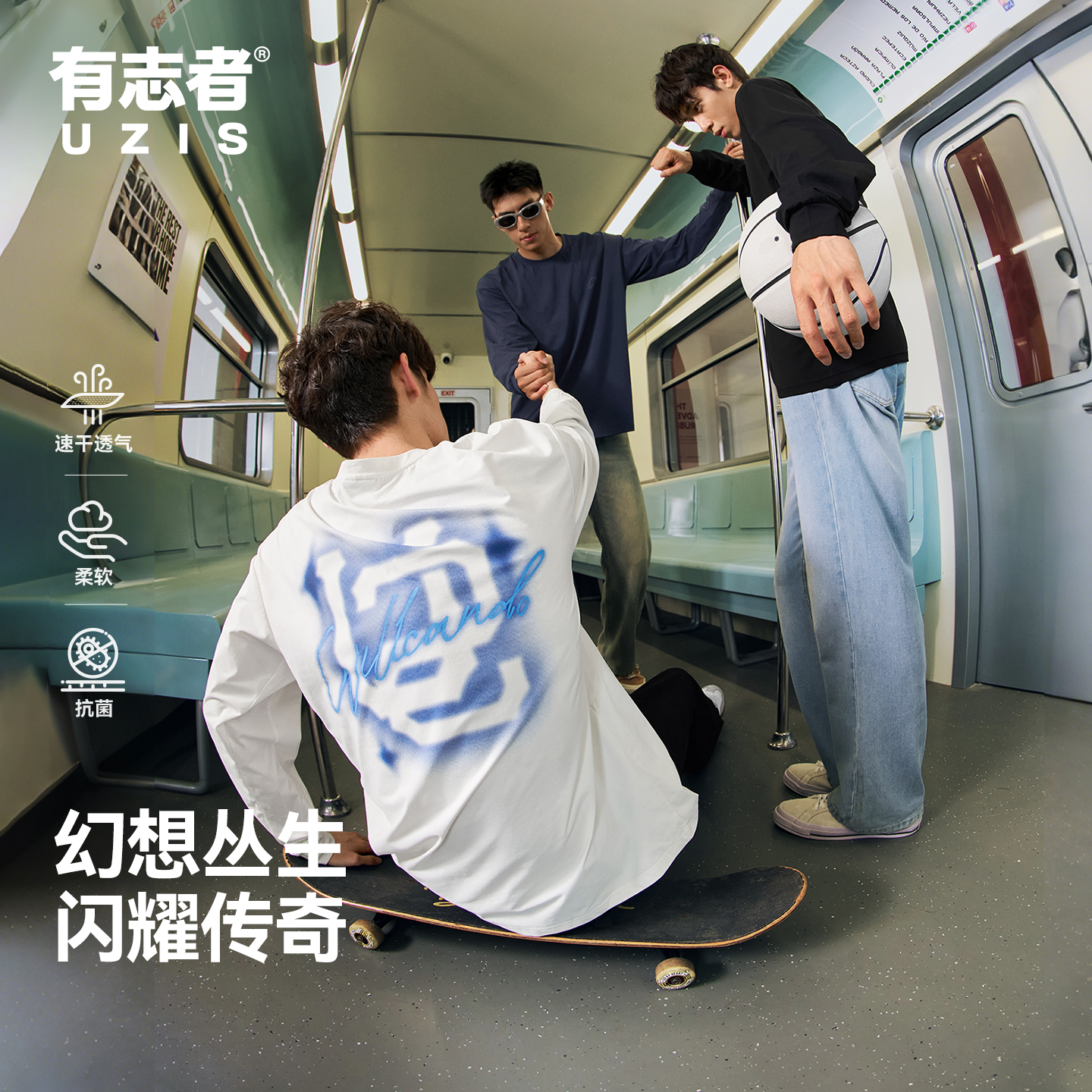有志者UZIS美式 T恤男宽松休闲透气圆领训练运动上衣幻象 潮流长袖