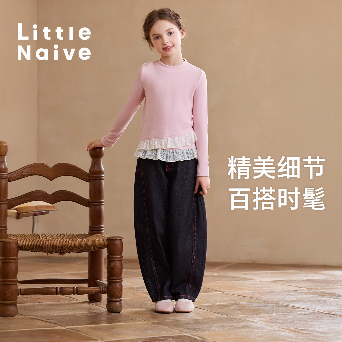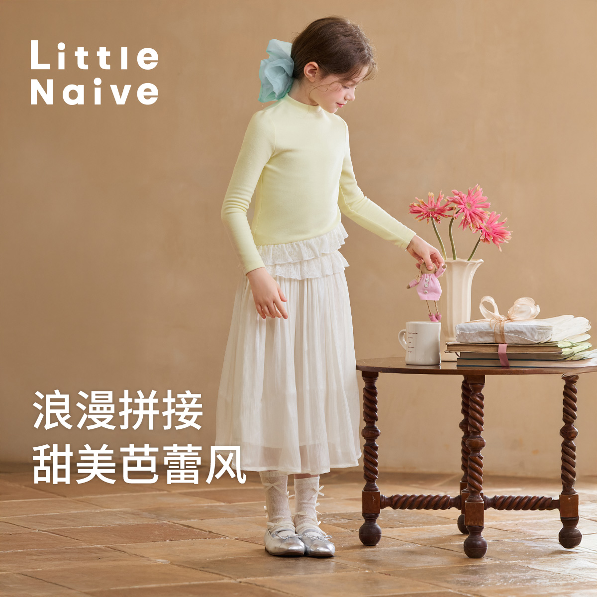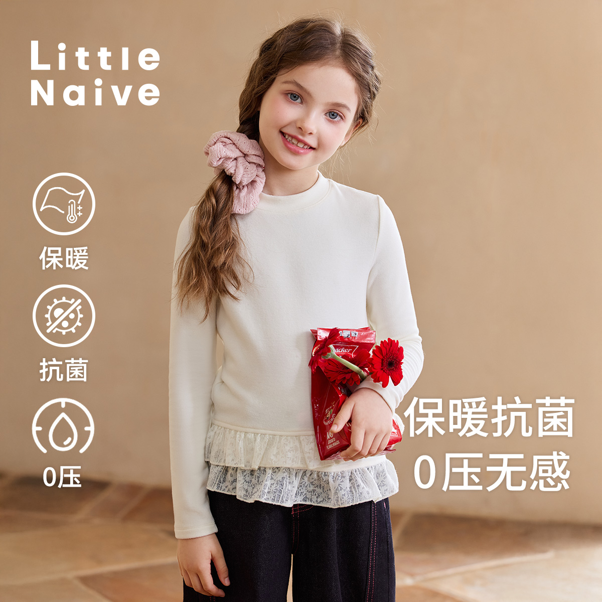 保暖抗菌儿童甜美打底衫 Little 新款 T恤秋季 Naive女童芭蕾风长袖
