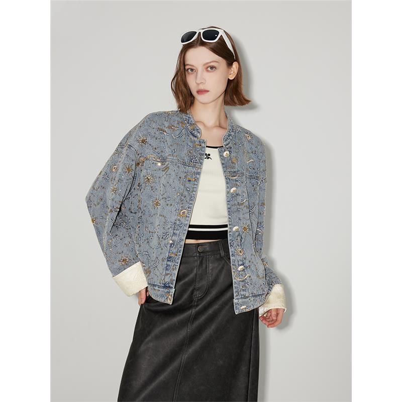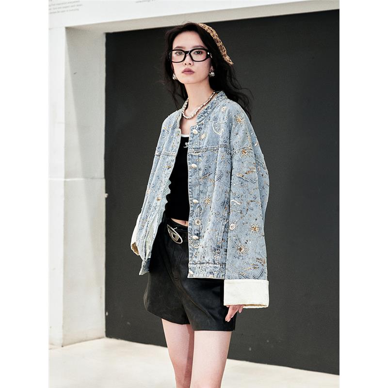 短款 外套2025春秋胖mm女装 质感外套重工牛仔上衣新中式 爵莱菲大码