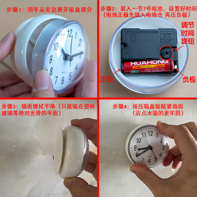 卡通迷你浴室防水小时钟厨房卫生间防水挂钟新款 墙上厨房表防潮