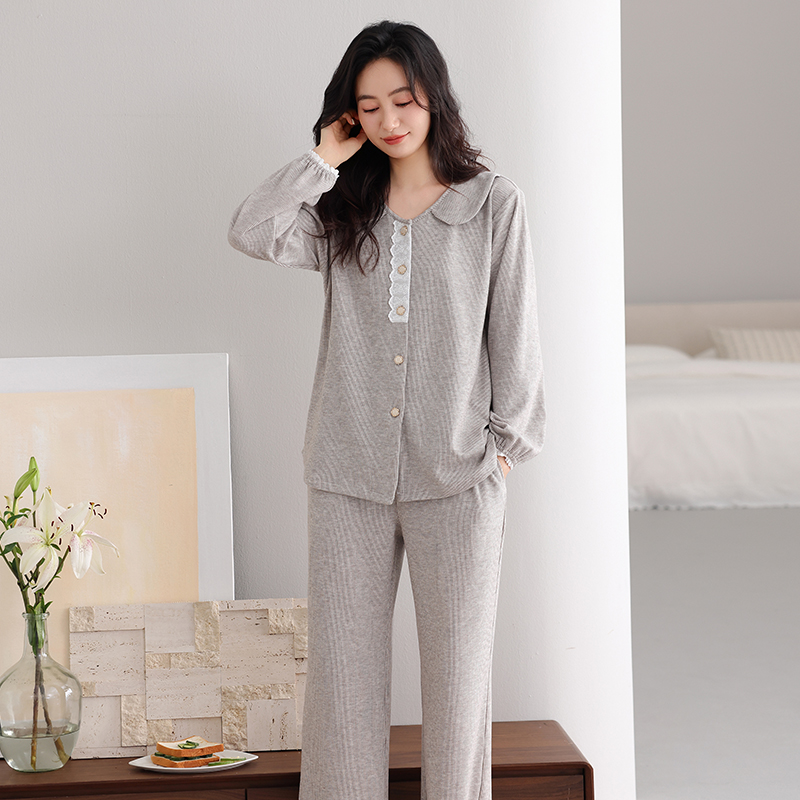 春秋家居服套装 妮狄娅秋季 简约版 男翻领开衫 情侣睡衣女柔软棉长袖