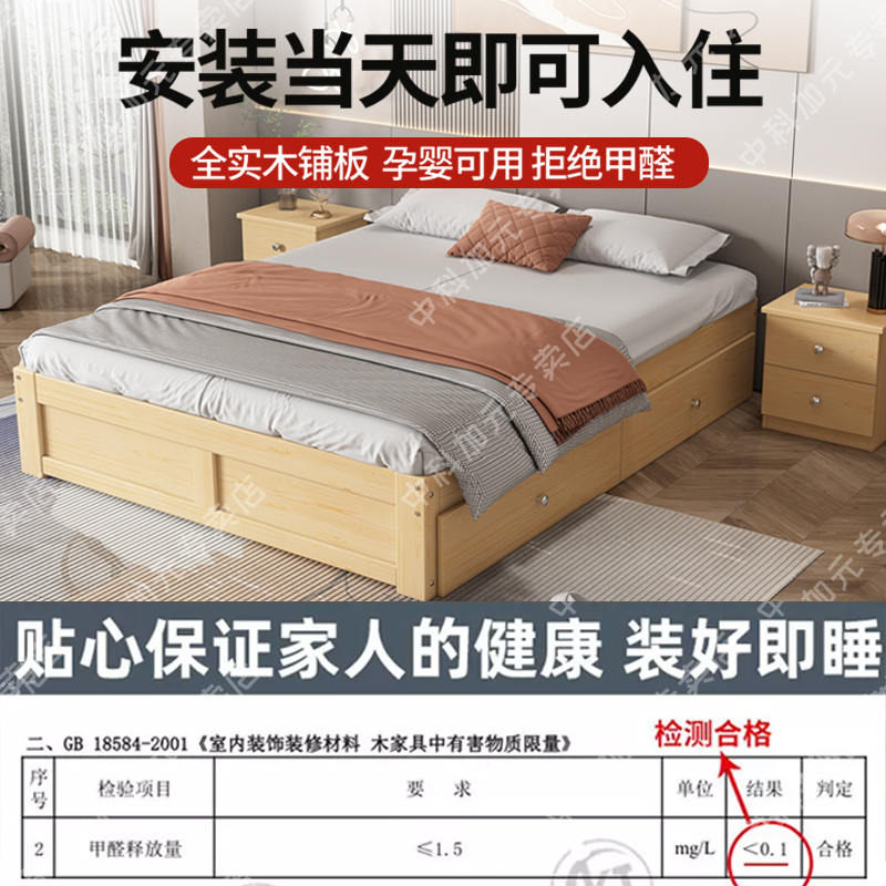 全实木无床头现代简约榻榻米1.5米双人床出租房实木床小户型床架