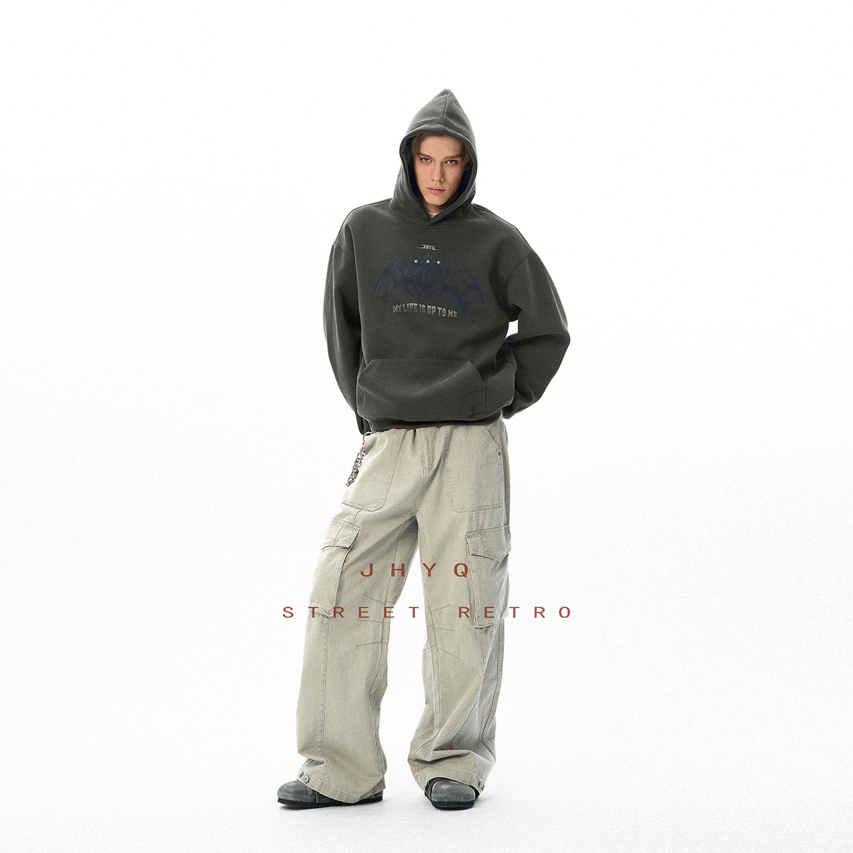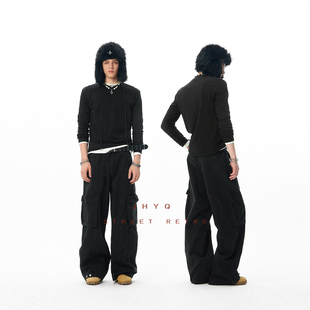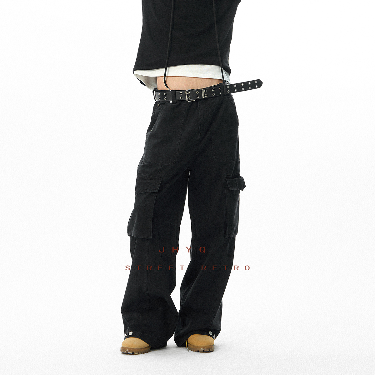 男宽松直筒阔腿高街拖地长裤 裤 子 复古水洗做旧多口袋工装 JHYQ美式