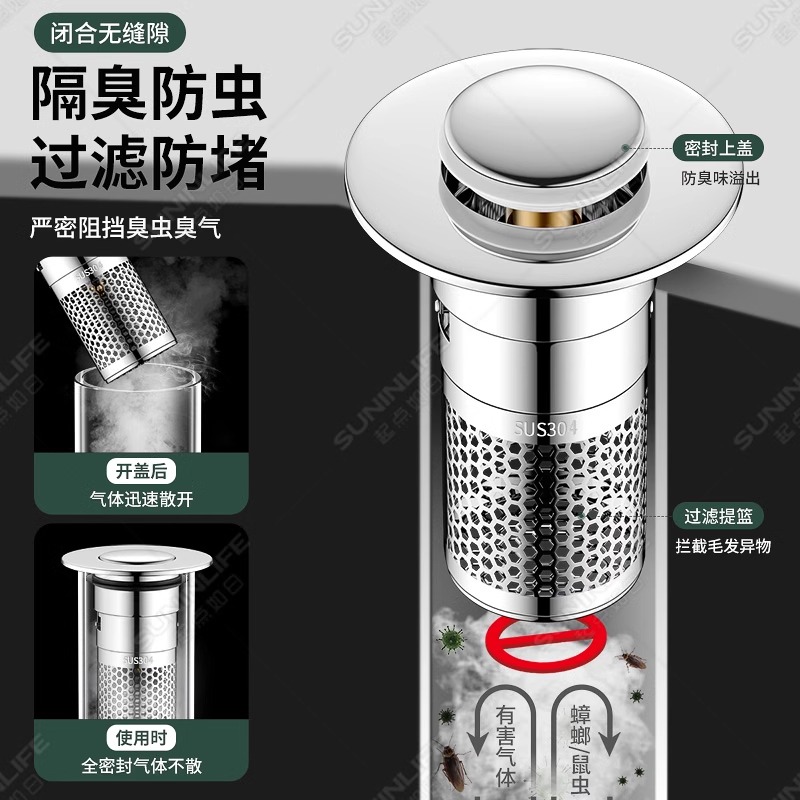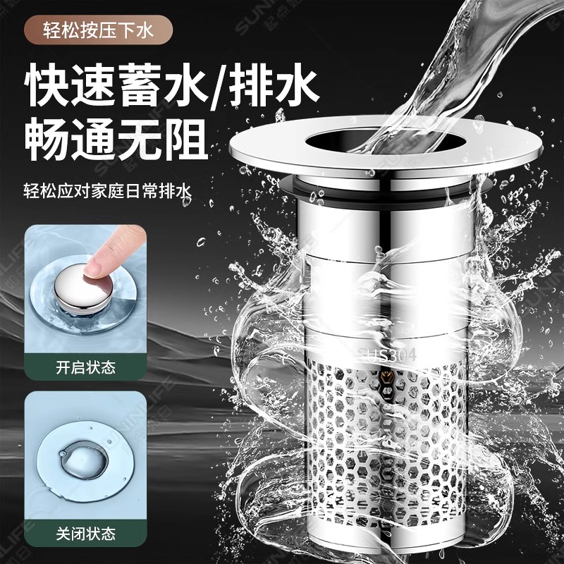 洗脸盆手池漏水塞按压式 弹跳芯面盆通用下水器防头发防堵臭过滤网