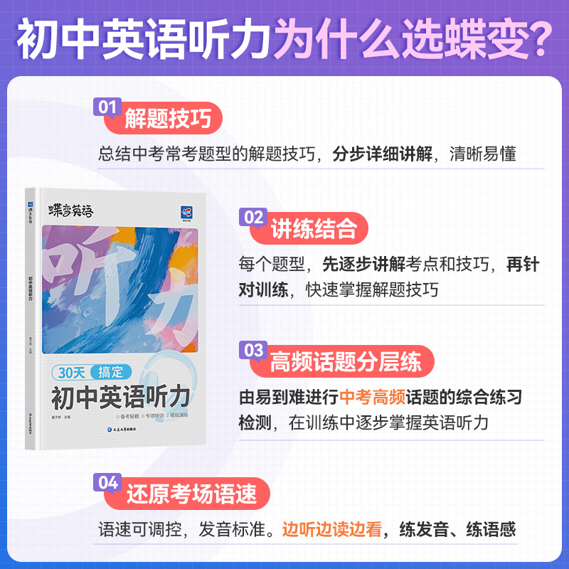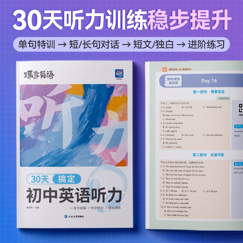 2025初中英语听力理解蝶变英语中考专项听力训练初一初二初三中考总复习教辅教材资料模拟试题真题复习题练习册在线听力音频课