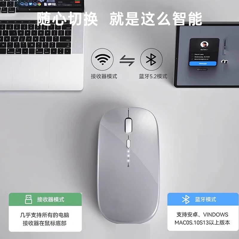 无线蓝牙鼠标静音可充电双模办公笔记本电脑滑鼠适用华为戴尔联想