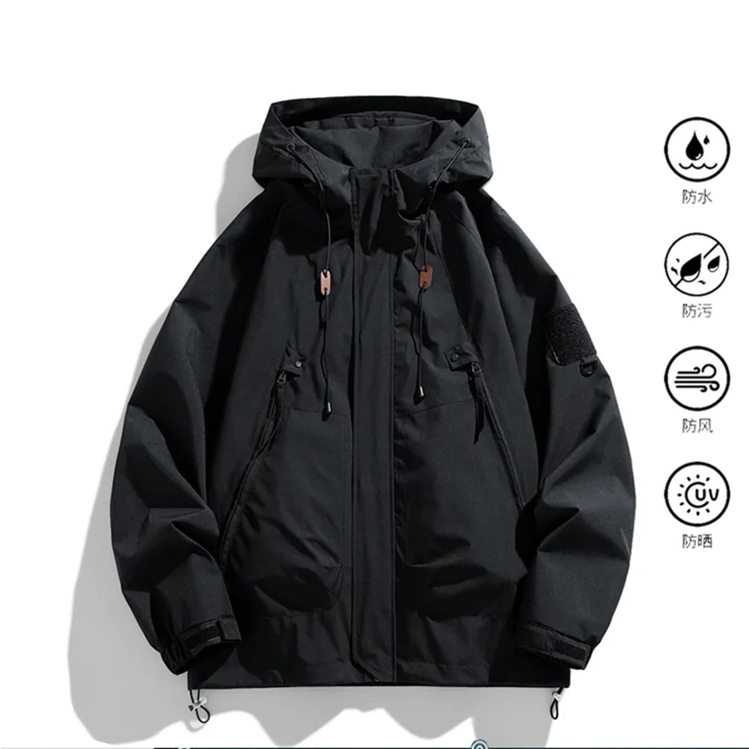 森马户外三防外套男2025秋款 连帽上衣百搭徒步露营夹克男女同款