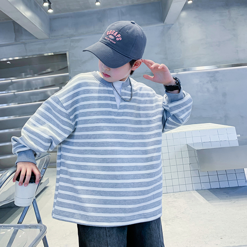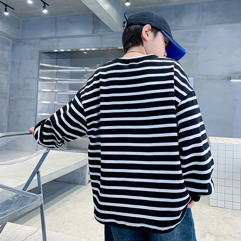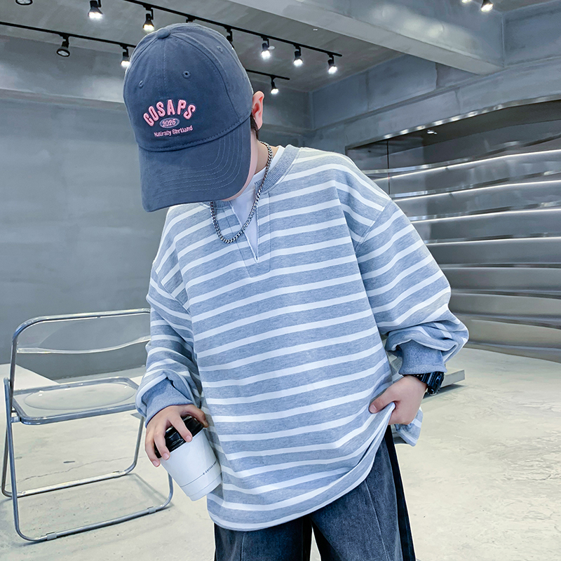 T恤春秋款 大男孩秋季 2025新款 打底衫 卫衣潮 儿童秋装 男童条纹长袖