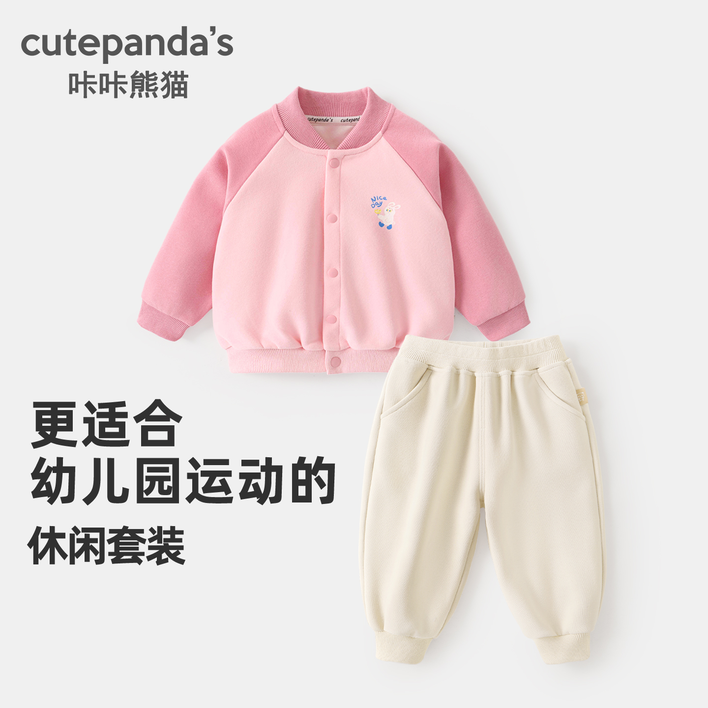 童装 咔咔熊猫宝宝棒球服套装 子两件套秋款 儿童休闲外套裤 衣服 秋季