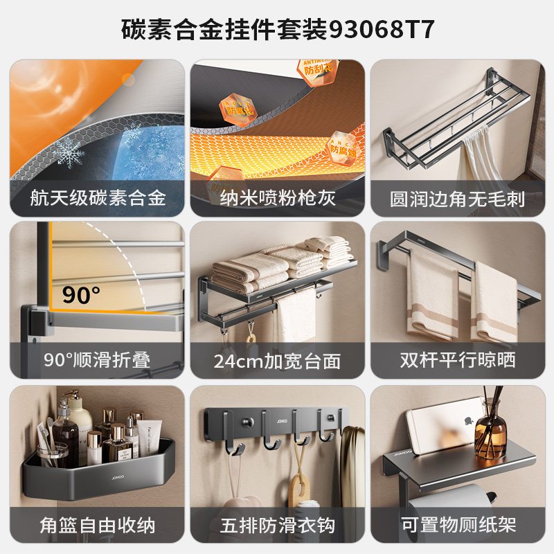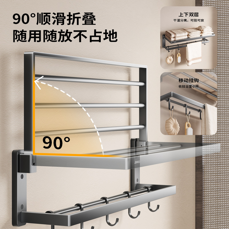 九牧碳素合金枪灰毛巾架免打孔卫生间浴巾架置物架 25年新款