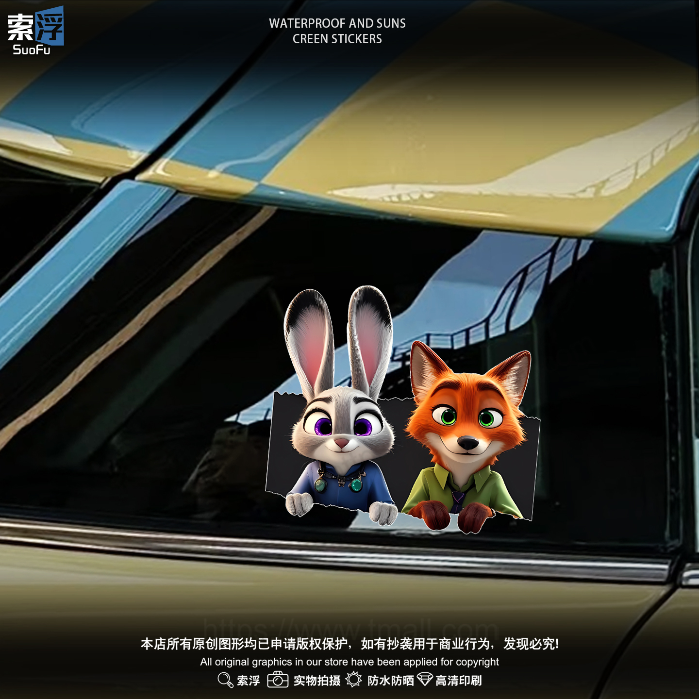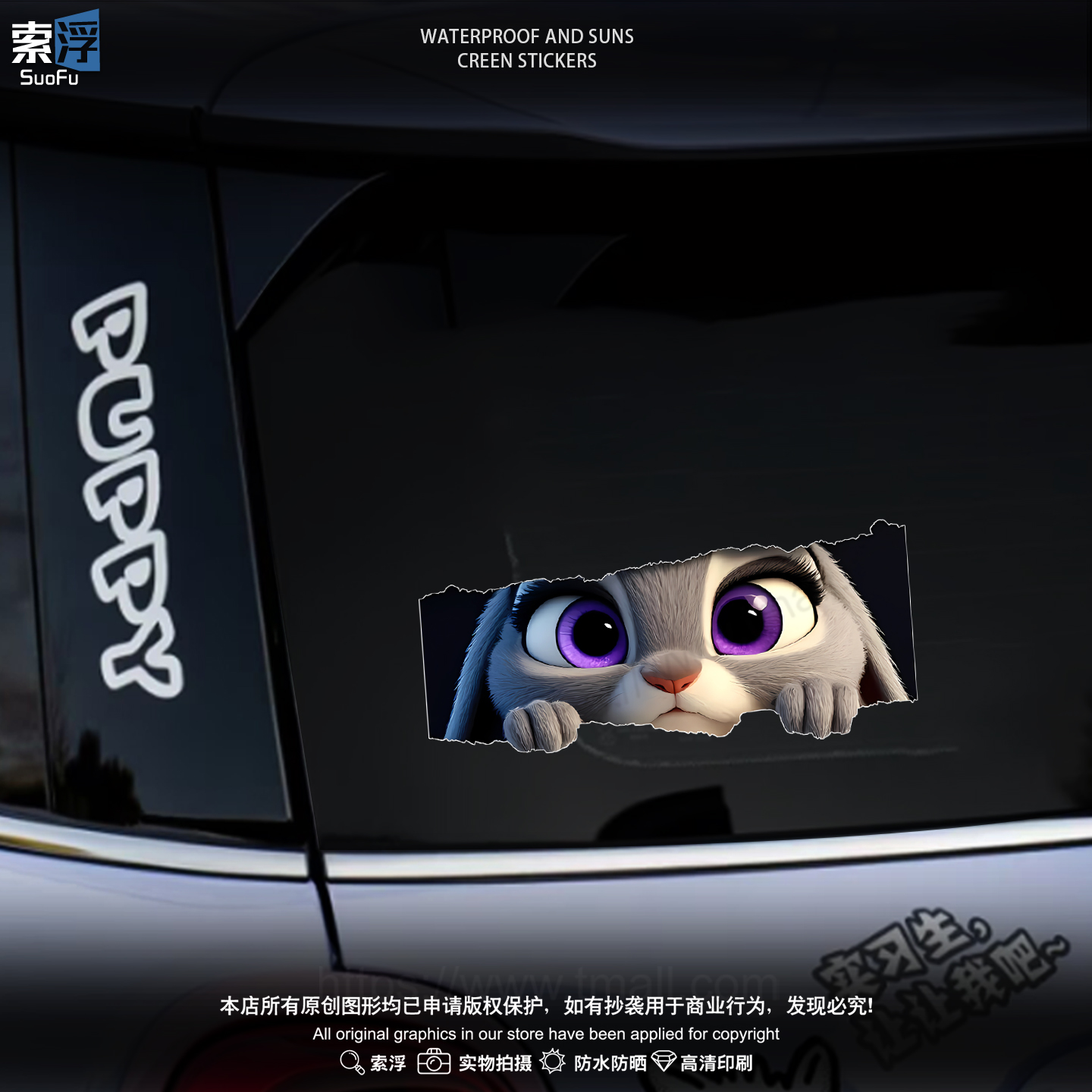 疯狂动物城汽车贴纸卡通创意兔子警官朱迪尼克电动车防水装 饰贴画
