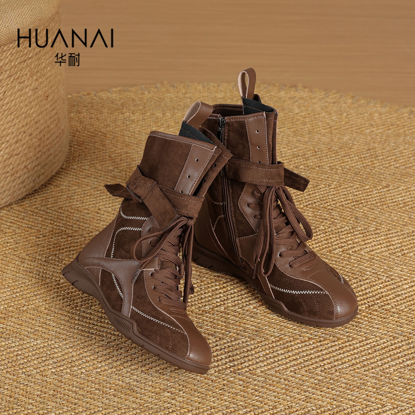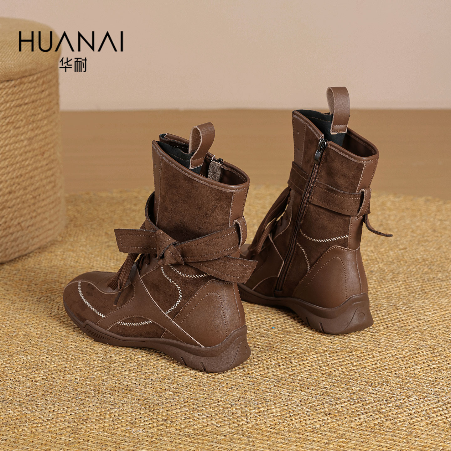 卢昱晓同款 靴CGY01DS4 TATA他她小熊靴棕色西部靴短靴堆堆靴时装