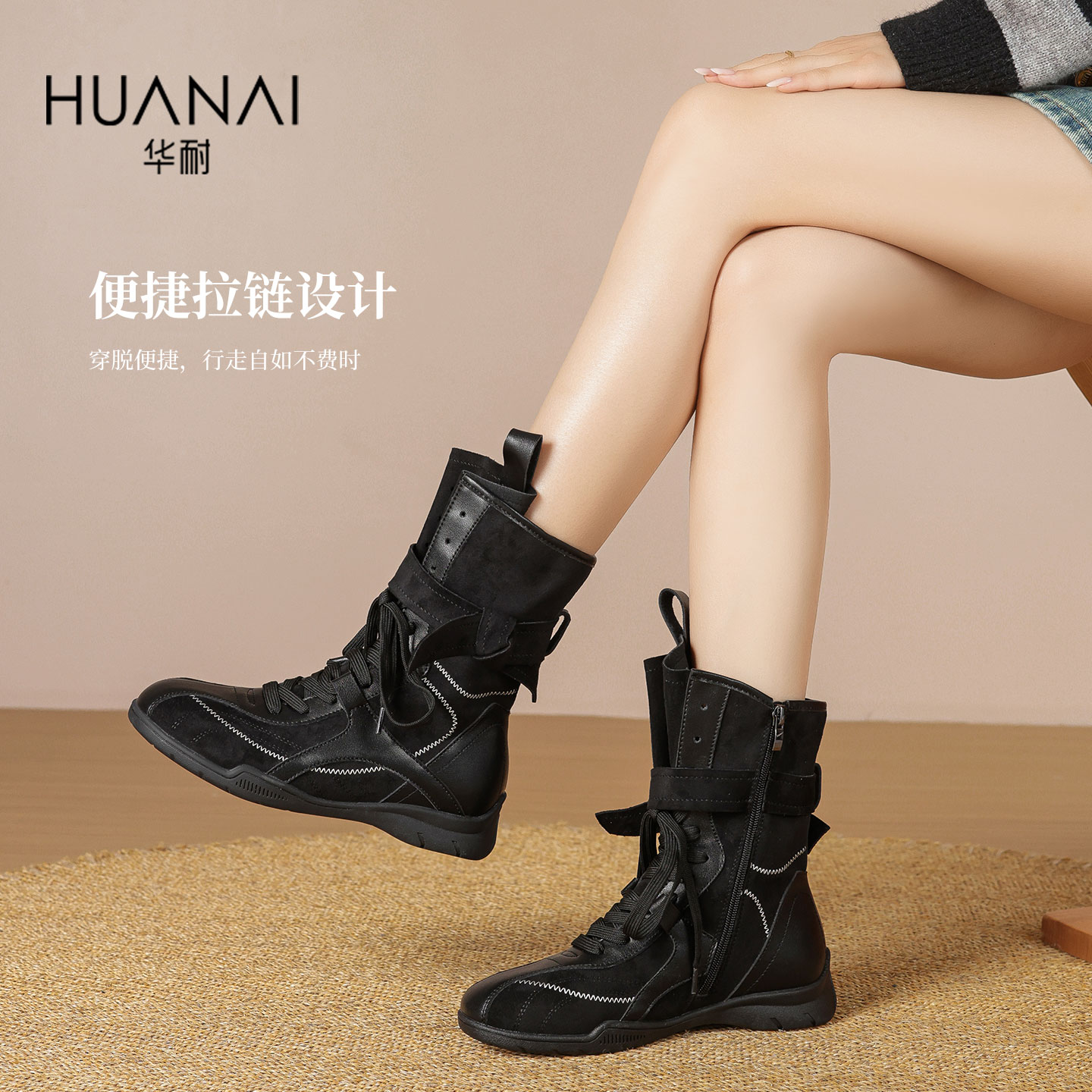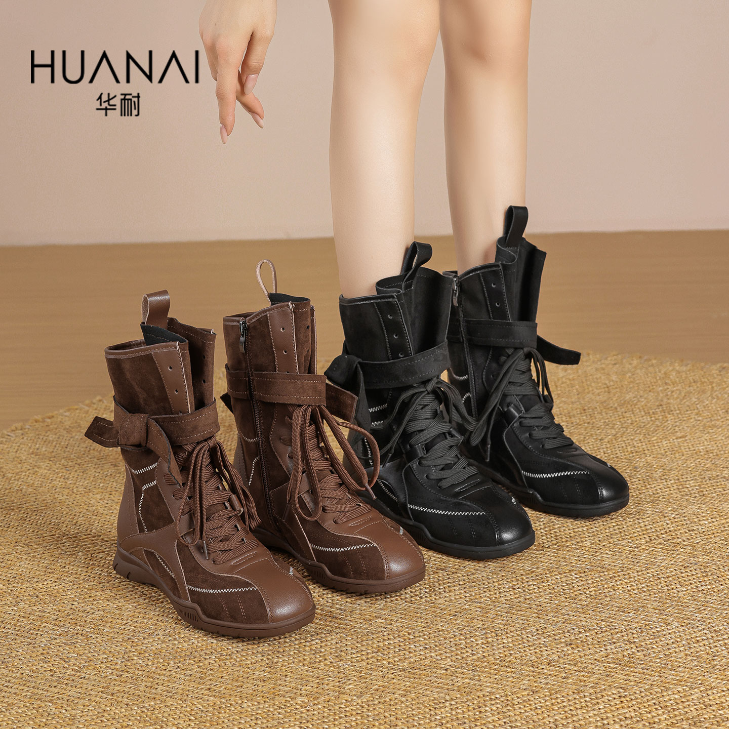 百思图真皮西部靴堆堆靴厚底女短靴 李佳琦直播间生活节付定金