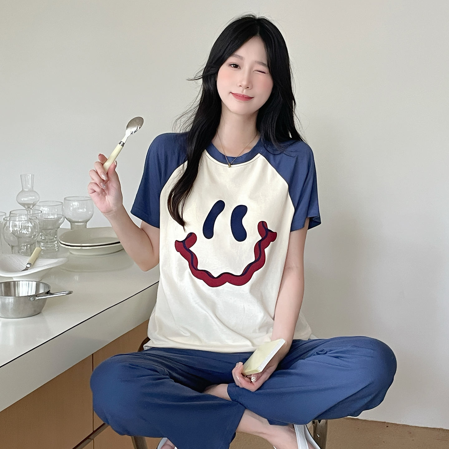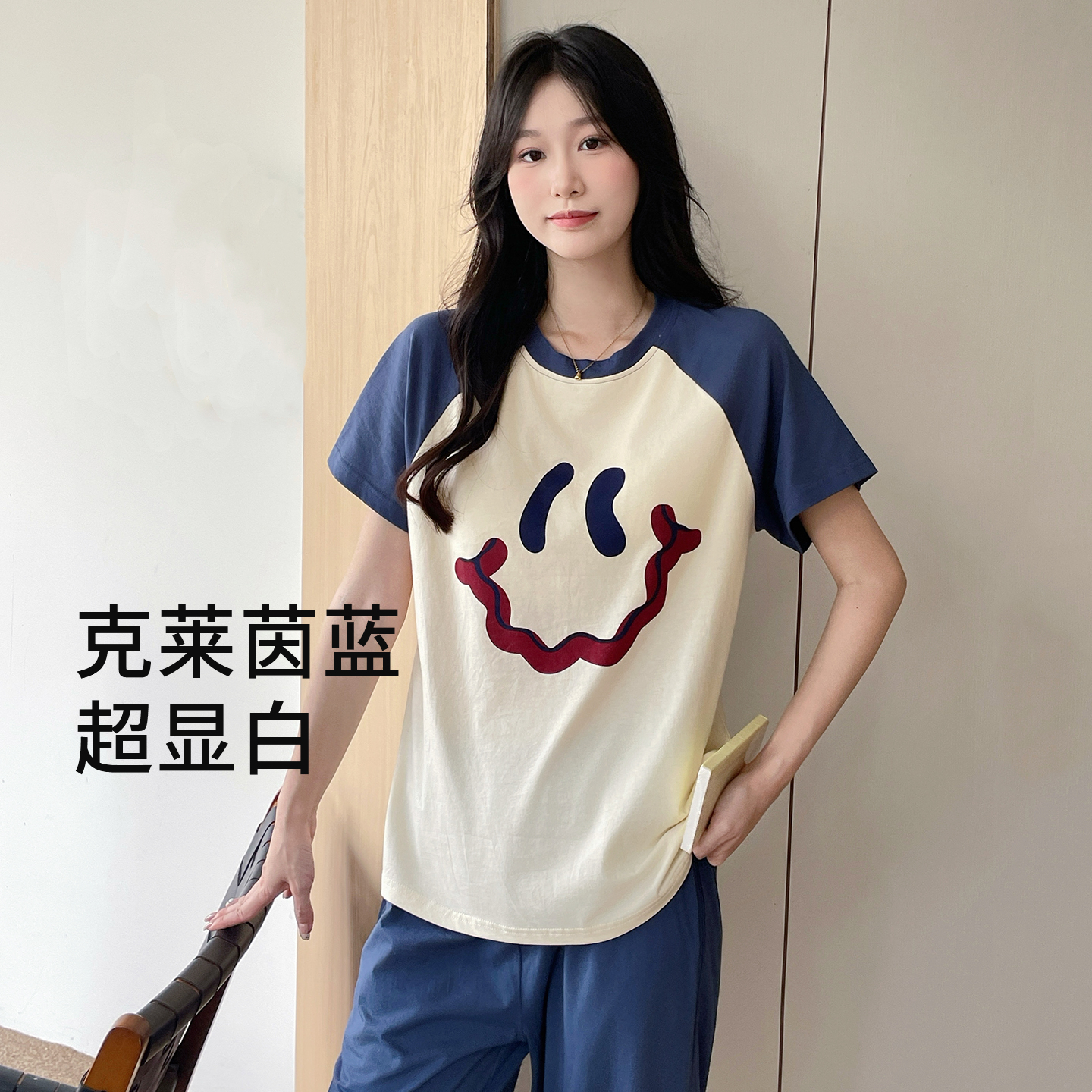 宽松休闲家居服套装 康妮雅睡衣女夏季 2025年新款 长裤 纯棉短袖