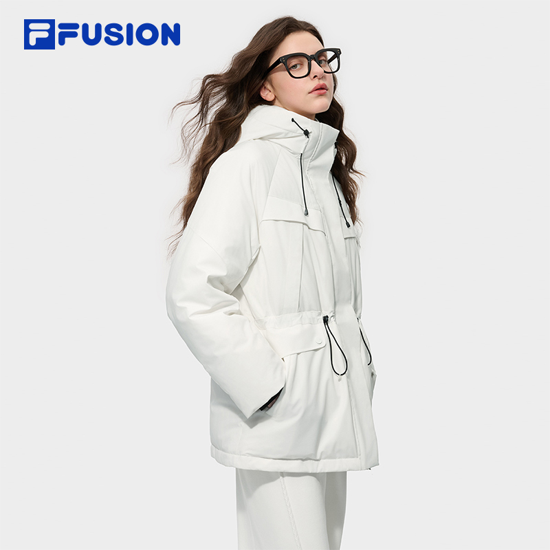 棉羽连帽外套 保暖鸭绒中长款 FILA斐乐官方女士羽绒服冬季 运动时尚