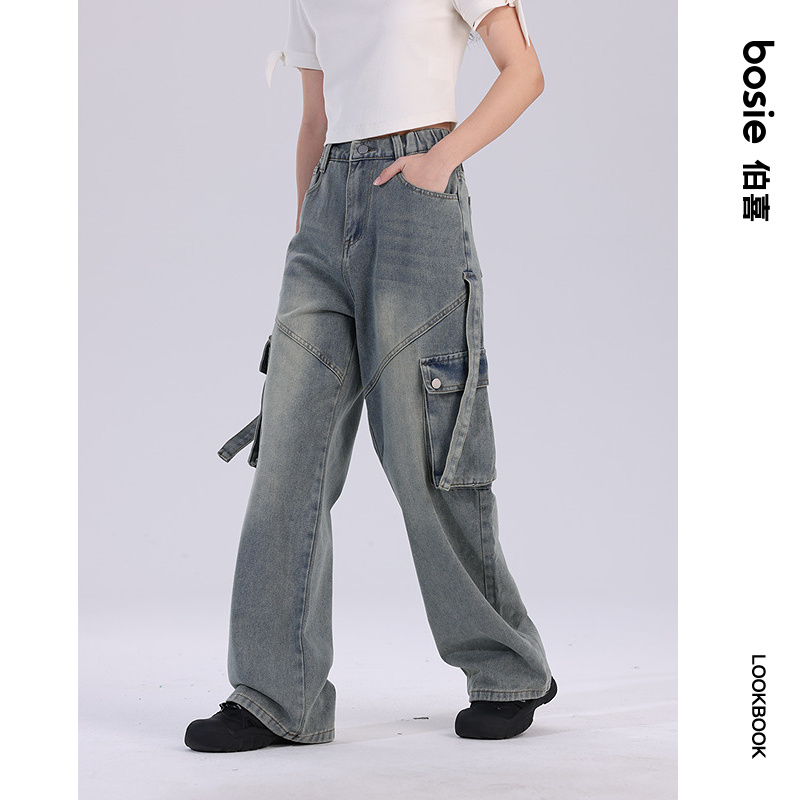 新品 2025秋季 复古做旧水洗丹宁宽松时髦宽松直筒牛仔长裤 GXG男装