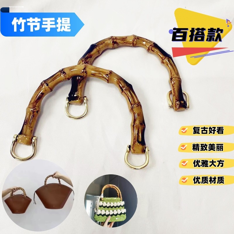 竹节手提手柄包包配件手工藤条编织包可拆卸五金把手树脂提手竹子